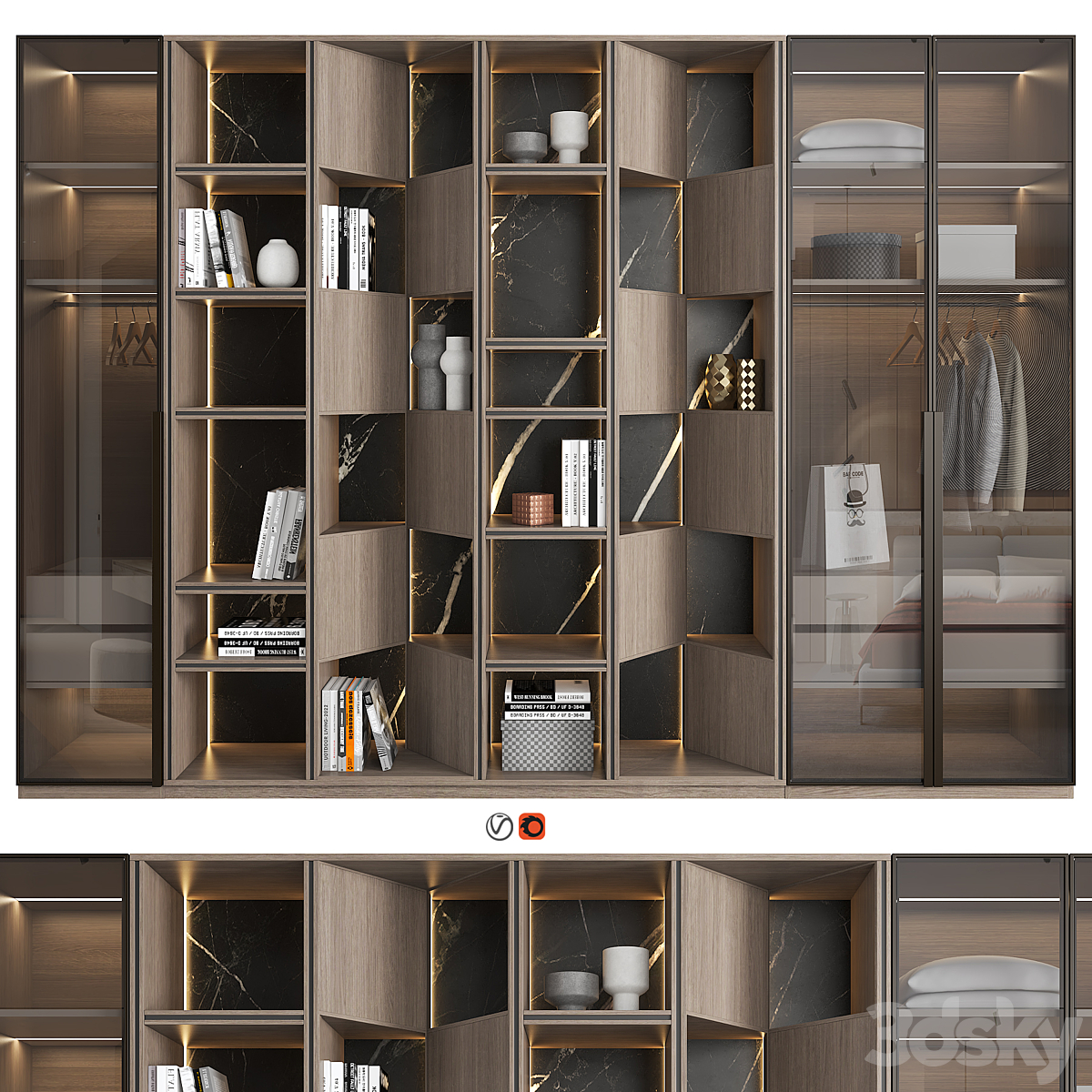 Fonksiyonel Raflar: Kitaplar, dekoratif objeler ve ofis malzemeleri için ideal raf düzeni sağlar.